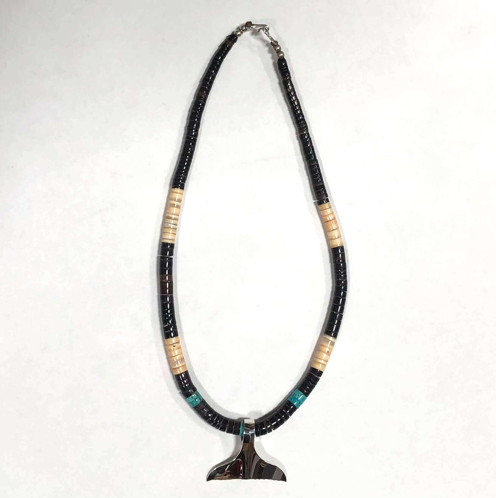 Vintage Surfer Necklace with XL Whale Tail – 18” -Dark Tones